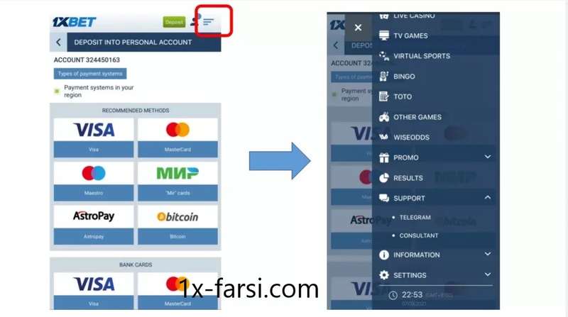 واریزها و برداشت های پول وان ایکس بت