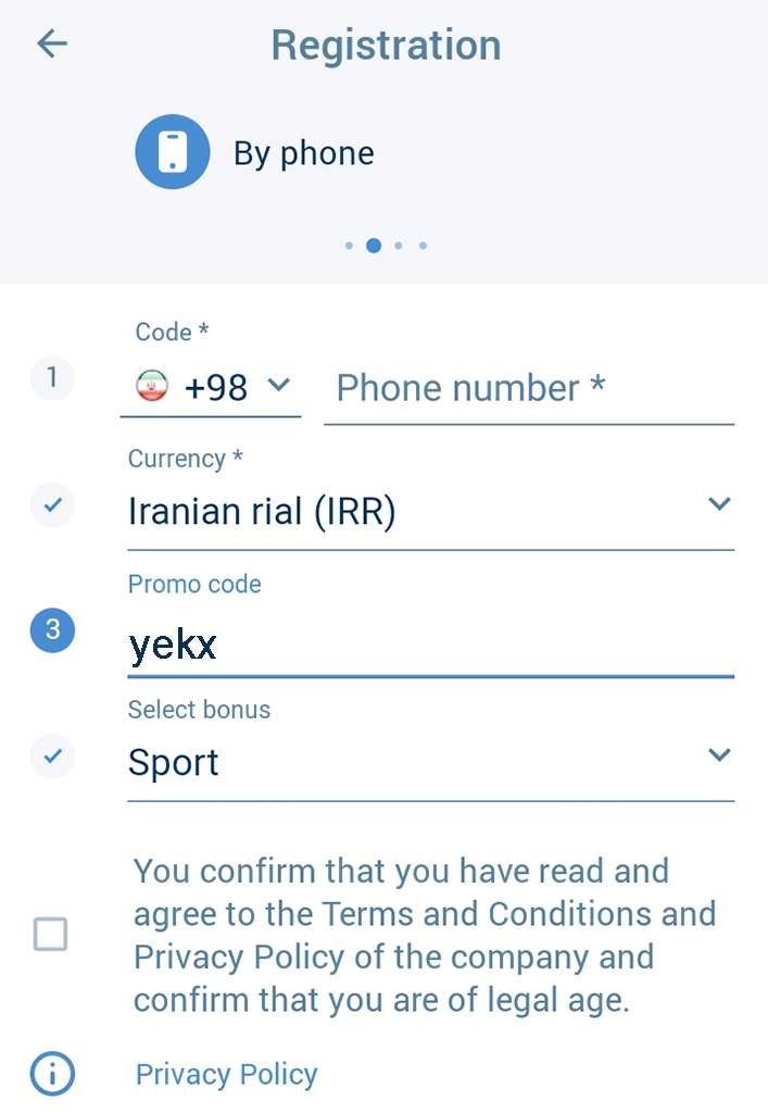 کاربر می تواند از پرومو کد یک ایکس برای بانس ورزش و یا کازینو و بازی استفاده کند. از این رو، هنگام پر کردن فرم ثبت نام در اپ 1xBet بانس اسپرت یا کازینو را انتخاب نماید تا متناسب با بانس انتخابی پاداش دریافت کند.